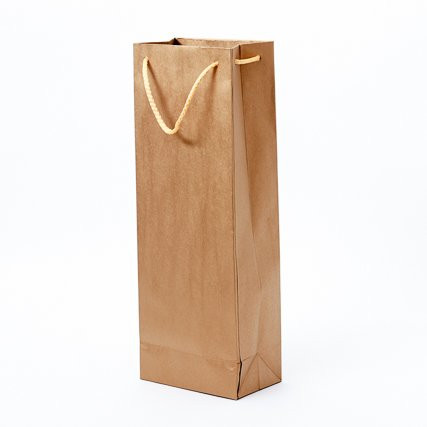 A nyomatlan, natúr barna zsinórfüles papírtáska akár, 1 db-os mennyiségben is megvásárolható csomagoló táska. Méret: 13x8x37 cm.